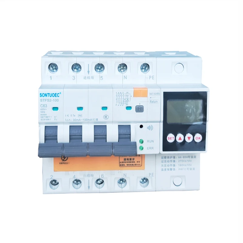 STSF2-100 100A 2P 4P Բազմաֆունկցիոնալ RCBO- ն հարմար է AC 50 / 60Hz- ի համար, գնահատվում է մի շրջանով `230 Վ -400V լարման եւ 100A- ի գնահատված հոսանքի հետ, երբ ապարատը էլեկտրահաղորդում է: Երբ արտահոսքը, գերլարվածությունը եւ թերագնահատումը հասնում են սահմանված արժեքներին, մնացորդային ընթացիկ սխեմայի անջատիչը կարող է արագ գործել շատ կարճ ժամանակահատվածում `արագորեն կտրելու էլեկտրամատակարարումը: Երբ մնացորդային ընթացիկ անջատիչի մոնիտորինգի ջերմաստիճանը հասնում է սահմանված արժեքի, դիտարկման հողատարածքը միացված չէ: Կապակցվելիս արտադրանքը ազդանշանային ձայն է արտանետում `անձնակազմի եւ էլեկտրական սարքավորումների անվտանգությունը պաշտպանելու համար եւ կարող է խուսափել Կանխել էլեկտրաէներգիայի ցանցում գերլարում ունեցող սարքավորումների վնասը: Ունի գերբեռնվածություն, կարճ միացում, արտահոսք, գերլարում, գերլարված թերագնահատման եւ գերբեռնվածության պաշտպանության գործառույթները կարող են օգտագործվել նաեւ նորմալ պայմաններում էլեկտրական սարքերից անջատելու եւ անջատելու համար Լուսավորության սխեմաներ, հատկապես հարմար է արդյունաբերական եւ առեւտրային լուսավորության բաշխման համակարգերի համար: Ապրանքը ունի փոքր ծավալ, կոմպակտ կառուցվածք եւ ավելի լավ ծախսարդյունավետություն, քան այլ նմանատիպ ապրանքներ: Այն ունի գեղեցիկ տեսք, Բարձր կոտրող կարողությունը լավ ընտրություն է դարձնում կենցաղային էներգիայի բաշխման համար: Այս ապրանքը համապատասխանում է GB / T 16917.1 եւ IEC 61009-1 ստանդարտներին եւ ստացել է CE սերտիֆիկացում:
