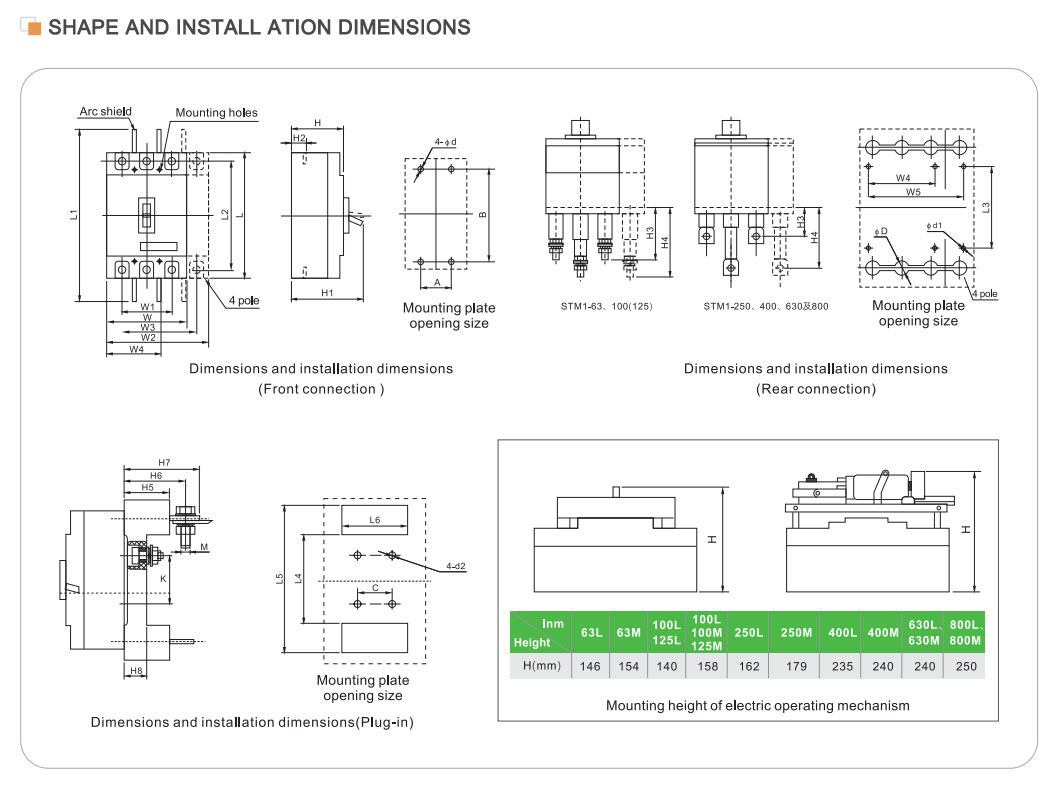 | Մոդել | STM1-125 | STM1-250 | STM1-400 | STM1-630 | STM1-800 | STM1-1250 | |||||||||||||